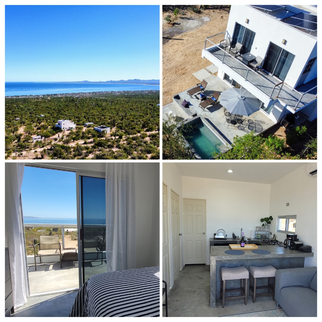 Disfruta de una experiencia con estilo en este alojamiento céntrico.con 2 cocinas interior y exterior con fire pit vistas increíble a los bosques de cactus camina ala playa en 10 mins a baja joes, el marlin ,baja grill restaurants .mejor lugar para hacer bici de montaña ,kite surfing, buceo ,hiking, yoga.