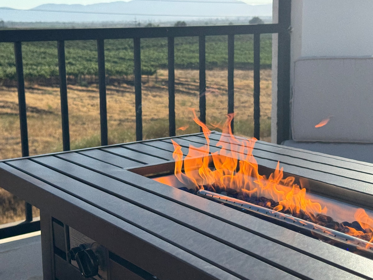Enjoy a romantic stay in this private cabana on the En’kanto vineyard. King sized bed, soaking tub, sitting room sofa and oversized chair, TV, mini fridge and wine/coffee bar. Your Alexa speaker plays your choice of music, wakes you, or reminds you of your dinner reservation. Private patio with chiminea and hammock. Complimentary bottle of En’kanto wine! Stroll through the vineyards, or enjoy wine tasting, pizza and empanadas at our wine bar. Air-con and heat with electric fireplace in winter.