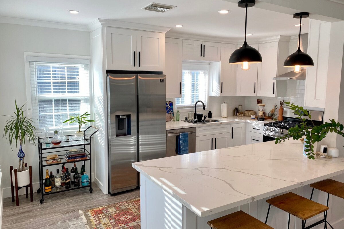 ¡Te damos la bienvenida a Shell House Venice! Este espacioso y luminoso dormitorio de 2,5 dormitorios y 1 baño 1911 Craftsman ofrece las comodidades de un hotel boutique con toques cálidos que lo hacen sentir como en casa. Perfecto para un fin de semana romántico, una escapada familiar o un retiro de escritor. El porche delantero tiene vistas a un gran patio con césped con una valla, y es perfecto para un café por la mañana o un descanso temprano por la noche. El patio trasero privado y cerrado ofrece un entorno tranquilo para cenar al aire libre y disfrutar de la fogata.