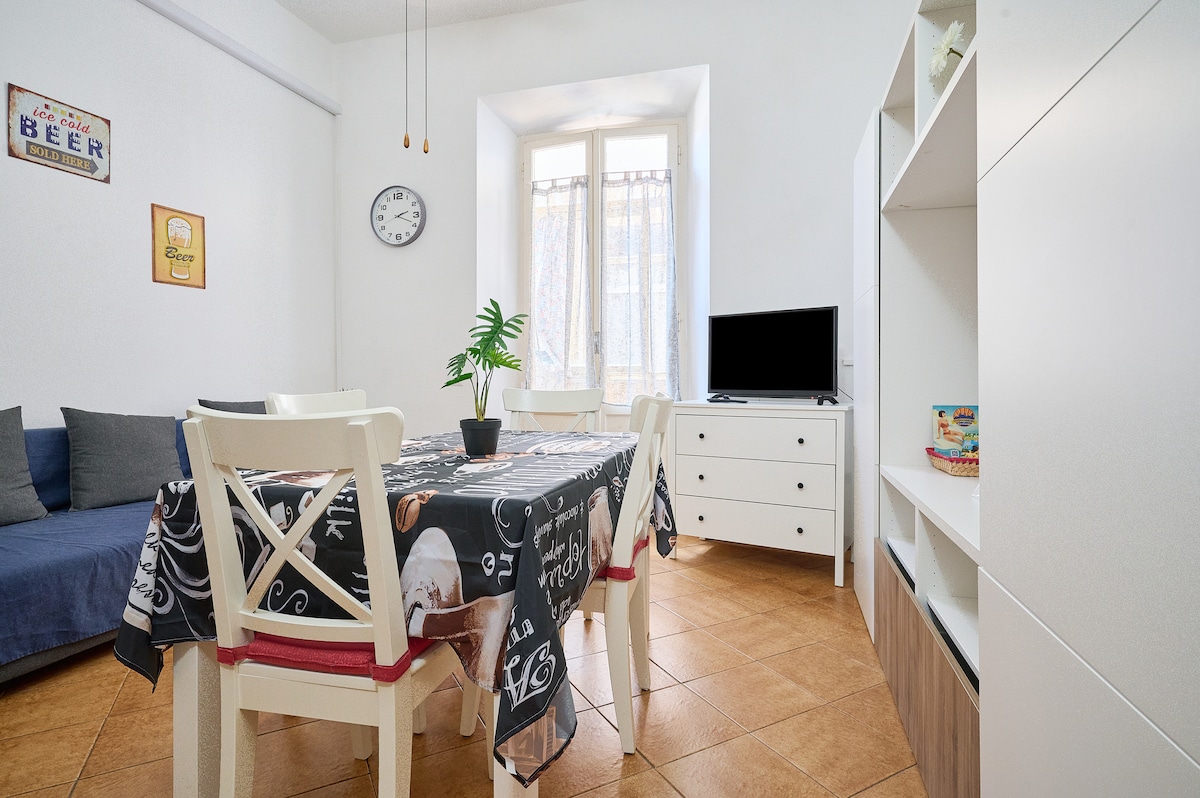 The apartment is a little jewel, it feels very loved, well equipped and with attention to detail. Apartment on the 4th and last floor of a small building, it is composed of an entrance with storage room; bathroom with shower box; large double bedroom; small kitchen equipped with fridge with freezer and oven; living area with single sofa bed and 50-inch LCD TV. To complete the apartment balcony with sea view with access from kitchen and living room. There is no parking space.