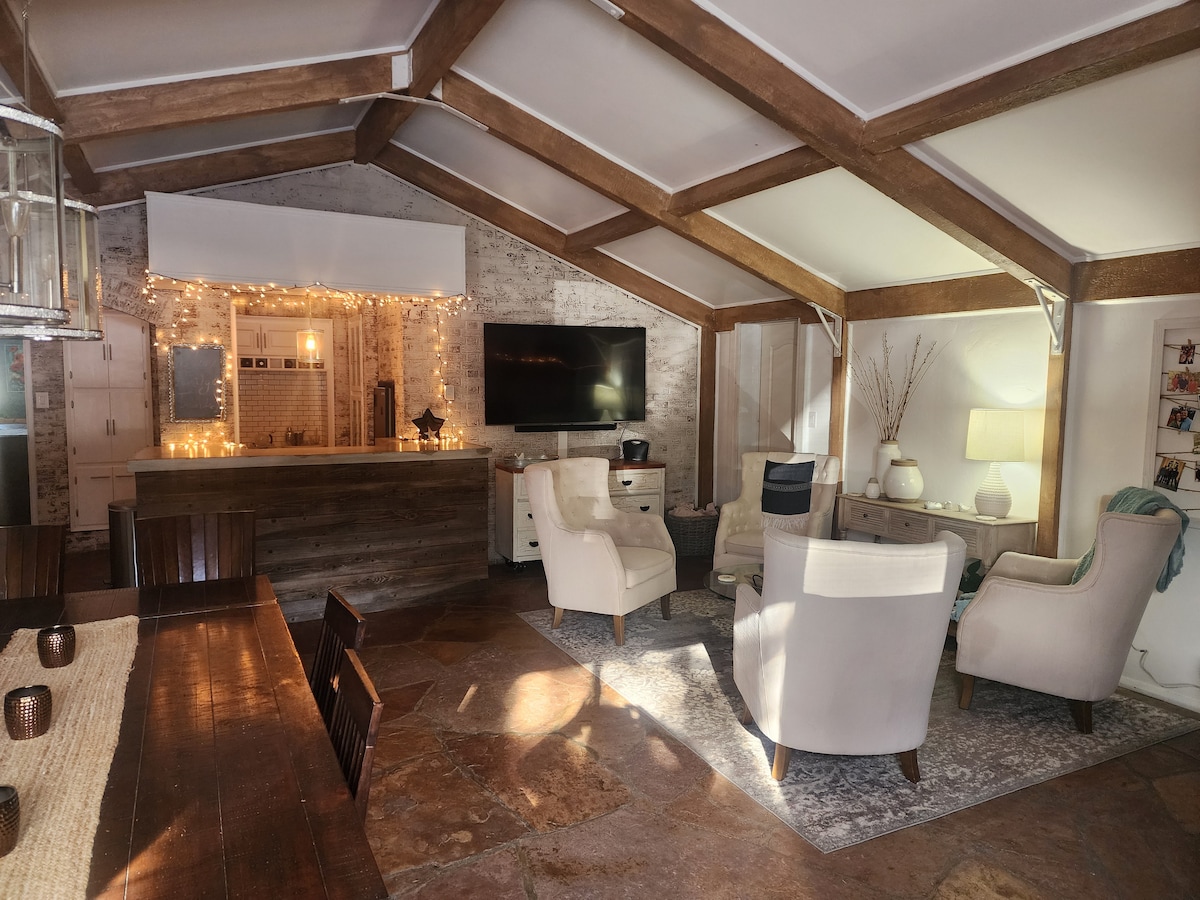 Desconecta de la rutina en este alojamiento único y relajante, sin alejarte de la ciudad. Construida en 1931, esta casa de 3 dormitorios y 2 baños está llena de carácter original y detalles actualizados cuidadosamente pensados para proporcionar la comodidad de un hogar lejos de casa. Ubicado entre pinos, se encuentra en un terreno de 1 acre con un gran porche, chimenea y zona de estar y jacuzzi con fácil acceso. En el interior encontrarás amplios dormitorios, un sofá cama, zona de oficina, cocina encantadora, un sótano con TV grande y juegos recreativos.