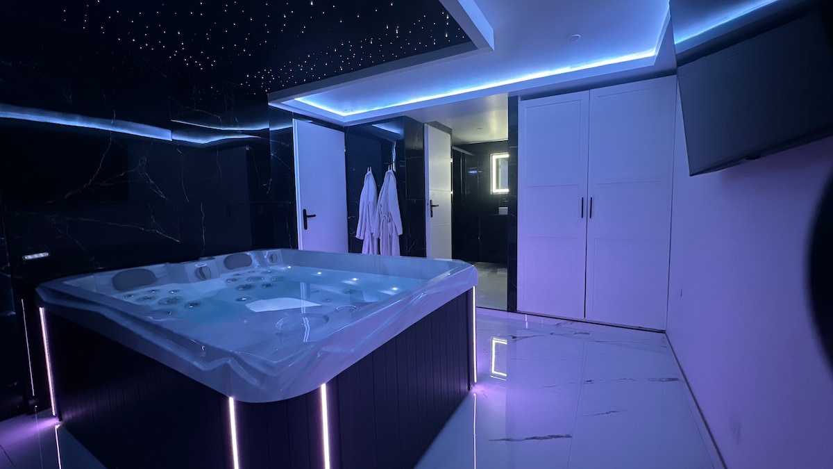 Bienvenue à La Perle Blanche, un véritable cocon de détente et de sérénité. Profitez d’un jacuzzi privatif et d’une grande douche pour un moment de relaxation absolue. Le lit spacieux, avec une seconde TV en face, vous promet des soirées cosy. Un espace cuisine modeste avec frigo, micro-ondes, vaisselle et machine à café est à votre disposition pour plus de confort. Tout est réuni pour une escapade romantique inoubliable. Réservez dès maintenant et laissez-vous séduire.