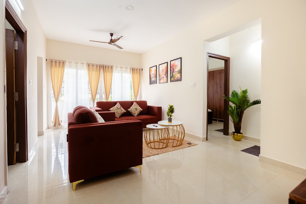 Welcome to Cozy Olive, a stylish green‑themed 1BHK on Neeladri Road, Electronic City. Nestled in a gated premium community, this eco‑friendly retreat offers comfort, security, and modern amenities. Relax in soothing olive interiors, enjoy a fully equipped kitchen, high‑speed Wi‑Fi, and premium furnishings. Perfect for business travelers or couples, Cozy Olive blends nature, convenience, and serenity for a refreshing Bangalore stay.