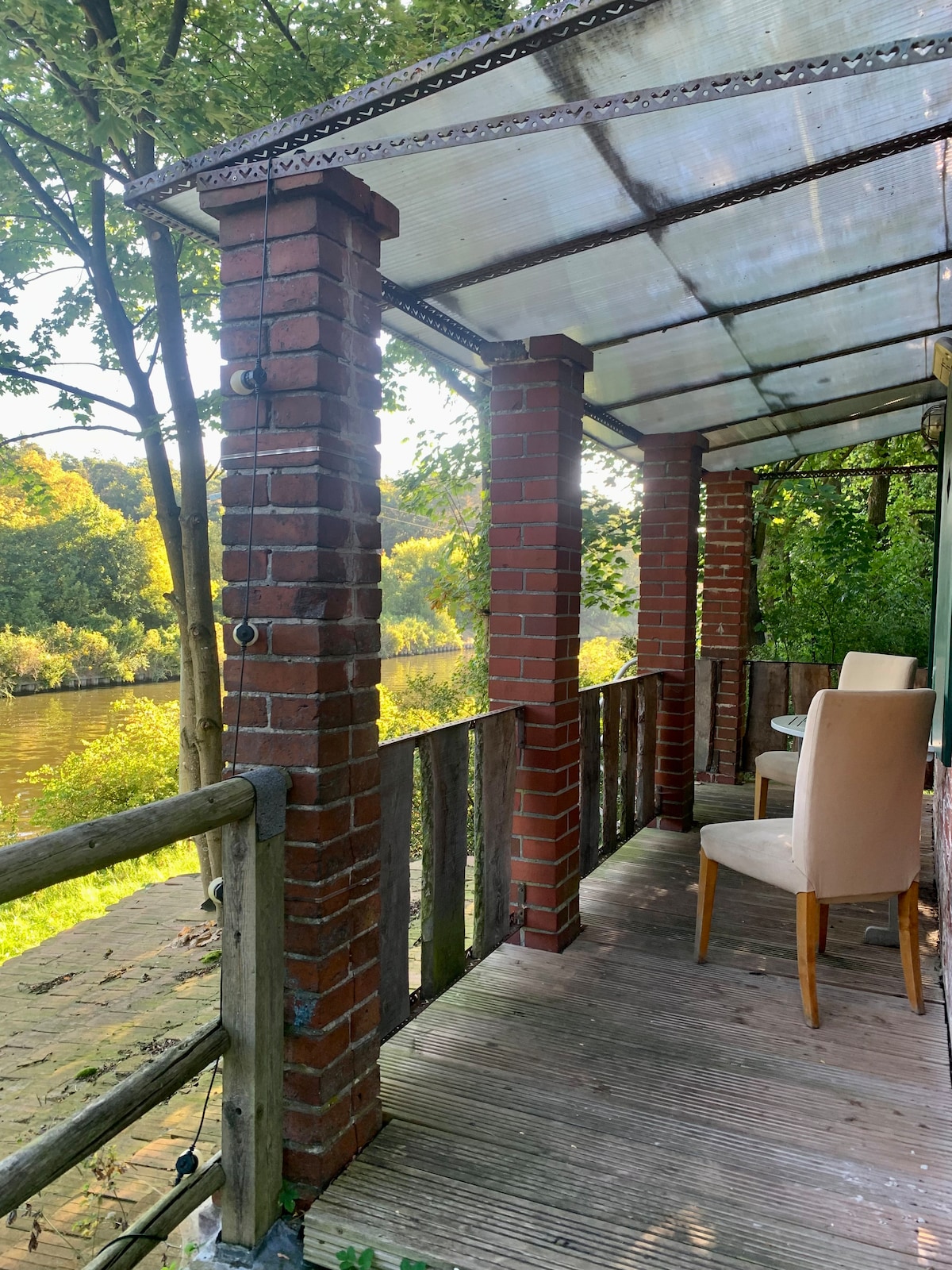 No es grande, pero tiene todas las comodidades para estar sin lujo. La casa es encantadora y antigua, no una minicasa de diseño. Se llega rápidamente al centro de Berlín y Potsdam. Acceso privado, balcón con vista al agua, terraza y jardín alrededor. Sala de estar con cocina, bañera, dormitorio y espacio adicional para dormir en el sofá cama por un cargo adicional. Vivimos al lado, así que nunca hay un problema de acceso o llave. Estamos en el Wall Trail. Las mascotas también son bienvenidas.