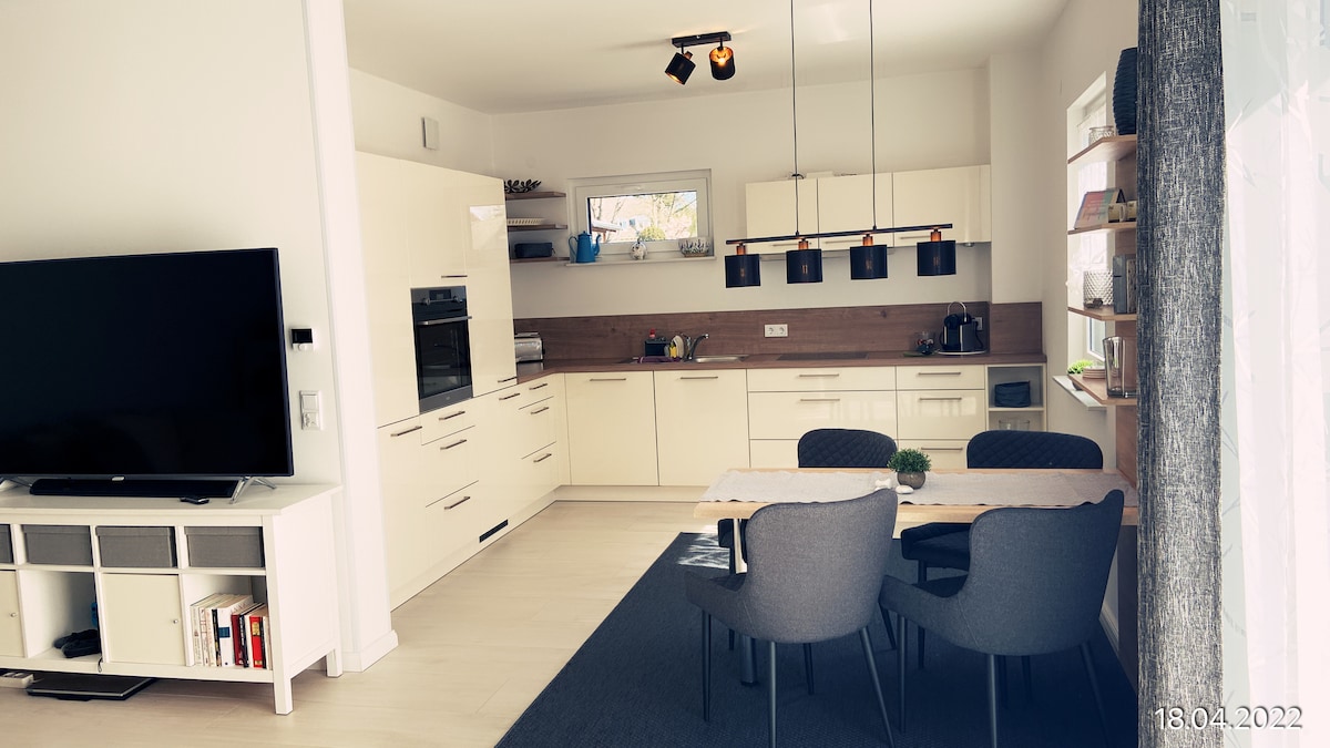 Moderno y tranquilo apartamento inteligente con jardín vallado privado y terraza soleada, a solo 20 minutos de Berlín en tren. ¡Envíame un mensaje para conocer mis descuentos! Ideal para parejas, viajeros solitarios o trabajadores remotos. Wifi rápido, espacio de trabajo con monitor, cocina completa, lavadora/secadora, Alexa y Netflix. Tiendas, farmacia, restaurantes y parada de autobús a pocos pasos. Estacionamiento gratuito frente a la casa, cerradura inteligente y entrada asegurada con cámara. Un refugio tranquilo y seguro cerca de la ciudad.