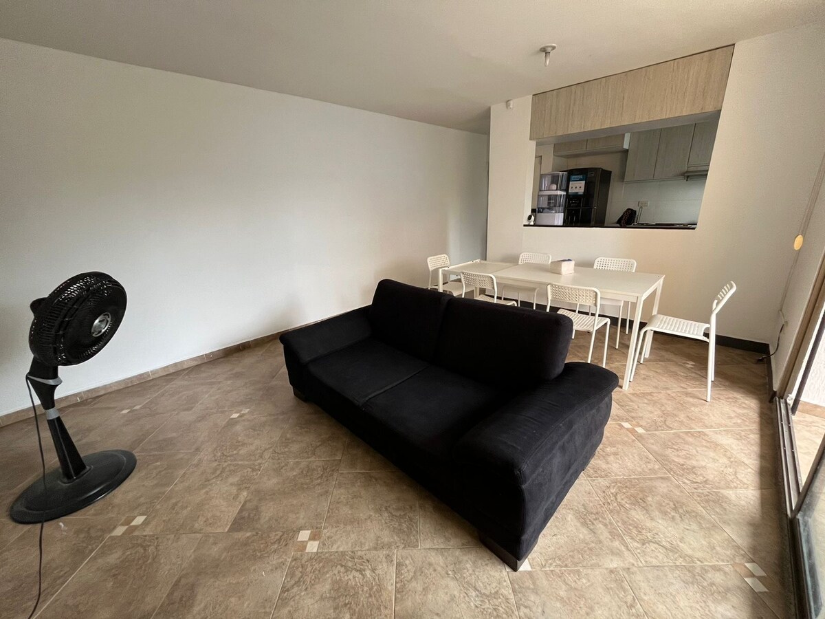 Hermoso apartamento con dos habitaciones disponibles en Rivera-Huila para vacacionar, a 10 minutos en moto a los termales los ángeles, 5 minutos caminando al centro del pueblo y a la plaza principal, 45 minutos a Neiva-Huila, 4 horas a San Agustín y 2 Horas al desierto de la tatacoa. Con una hermosa vista hacia las montañas. Cocina equipada con air fryer, arroceras, cafetera, tetera para hervir agua, lavadora y tendedero de ropa. Vigilancia 24 horas y parqueadero privado para motos.