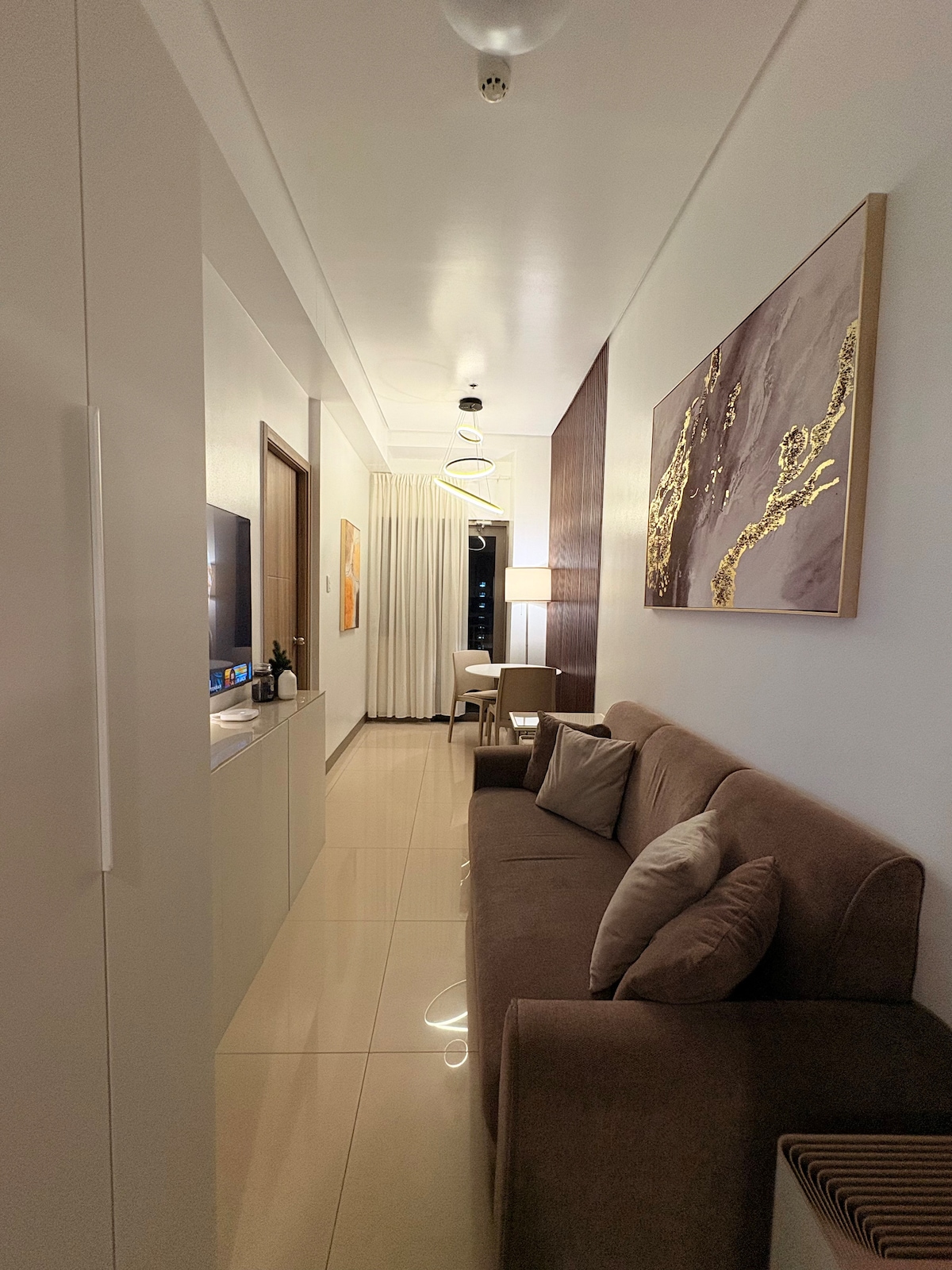 Experimenta la vida moderna en nuestro elegante condominio de 1 dormitorio en S Residences Tower 3. Diseñado con un toque minimalista, este espacio ofrece un ambiente acogedor, perfecto para parejas, familias pequeñas o viajeros de negocios. Con una decoración elegante, una iluminación cálida y un diseño funcional, es un refugio urbano ideal.