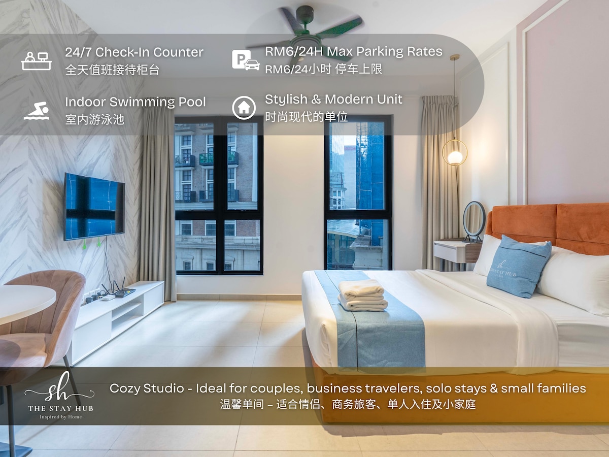 ✨ Nuevo estudio en MOSSAZ – ¡Piscina en la azotea, Netflix, amplio estacionamiento y WiFi! ✨ ¡Quédate en nuestro nuevo condominio tipo estudio (344 pies cuadrados) en MOSSAZ! Perfecto para parejas o grupos pequeños (hasta 3 huéspedes). Características: Cama tamaño queen + sofá cama Cocina pequeña compacta (microondas, sin estufa) Televisión INTELIGENTE de 43 pulgadas con Netflix WiFi de 100 Mbps Impresionante piscina infinita (piso 39) Cerca de One Utama Mall ¡Tranquilo, acogedor y económico! Prohibido fumar/mascotas. Horas de silencio: 10:00 p. m. a 9:00 a. m. ¡Reserva ahora! 🌟