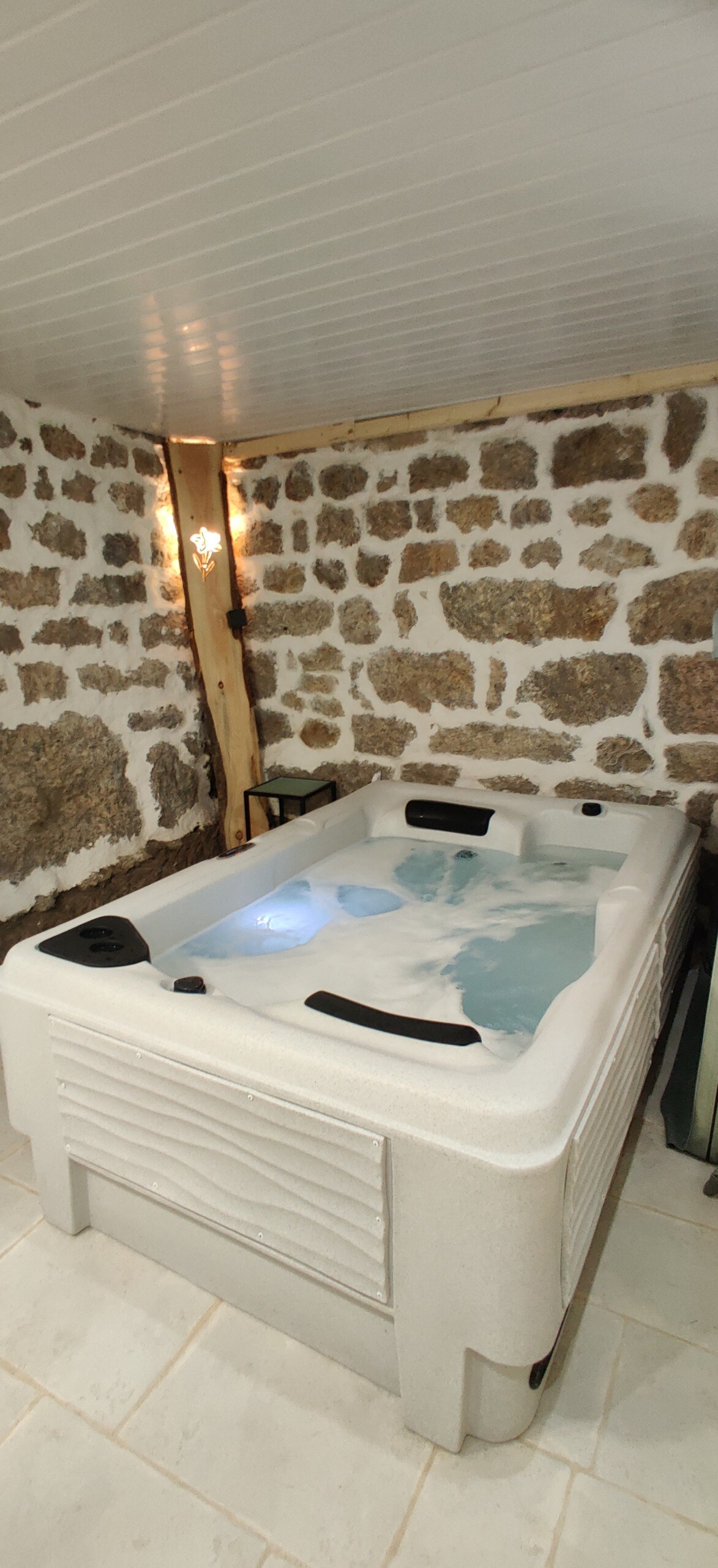 Casa entera privatizada de 50 m² en dos niveles, ideal para una escapada romántica para dos en Ardèche. Disfrute de un spa privado de 3 plazas con 50 chorros y luminoterapia, una acogedora sala de estar con cielo estrellado y un dormitorio con cama tamaño queen y cocina americana equipada. Entrada independiente para una total privacidad. Calificado con 4,99⭐ por casi 500 parejas. Todo está pensado para relajarse, reencontrarse y vivir un momento inolvidable en pareja.
