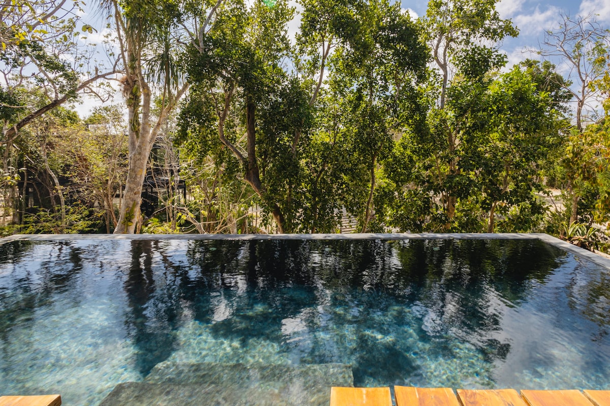 En Casa Kuro, la arquitectura japonesa dialoga con la selva maya en un refugio de contemplación. Creación de Namus, desarrollador publicado en las más importantes revistas de arquitectura global como Architectural Digest, ArchDaily, Design Boom y en el libro "Lo Mejor de la Arquitectura Mexicana del Siglo XI", además de múltiples premios internacionales. Este depa en primer nivel es un templo para los amantes del arte: 2 recámaras, alberca privada, tina y vistas a la jungla.
