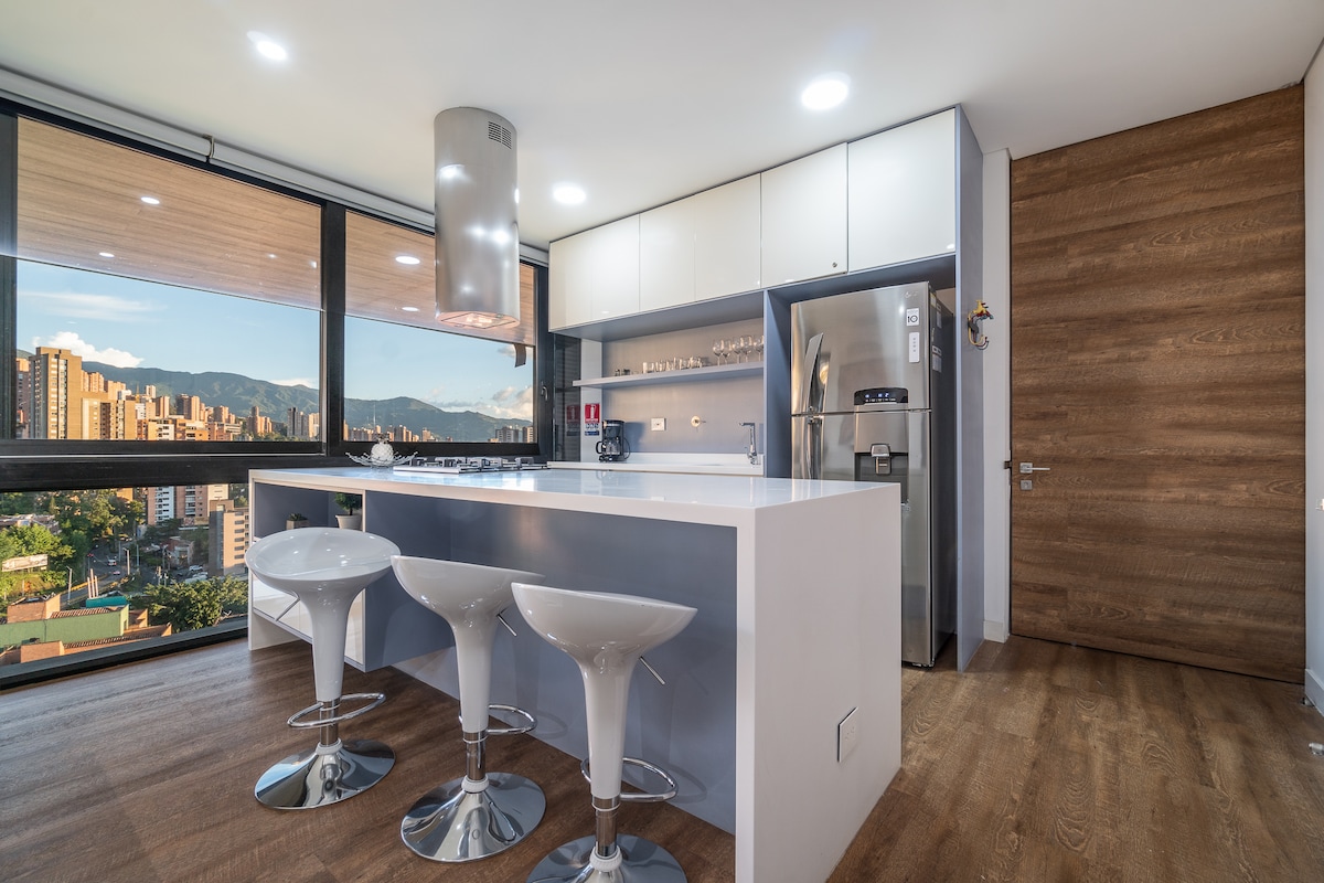 Loft de lujo de 70 m² en el noveno piso del emblemático Energy Living. Abre nuestras ventanas del piso al techo para transformar todo tu espacio habitable en un refugio amplio y al aire libre con las mejores vistas del perfil urbano de Medellín. Cuenta con una cama tamaño king, dos televisores de 80 pulgadas y un diseño moderno y elegante. Disfruta de una piscina infinita en la azotea, gimnasio y jacuzzi en el piso 22. Ubicado a 5 minutos de Provenza y El Tesoro. Seguro, tranquilo y perfectamente comunicado.