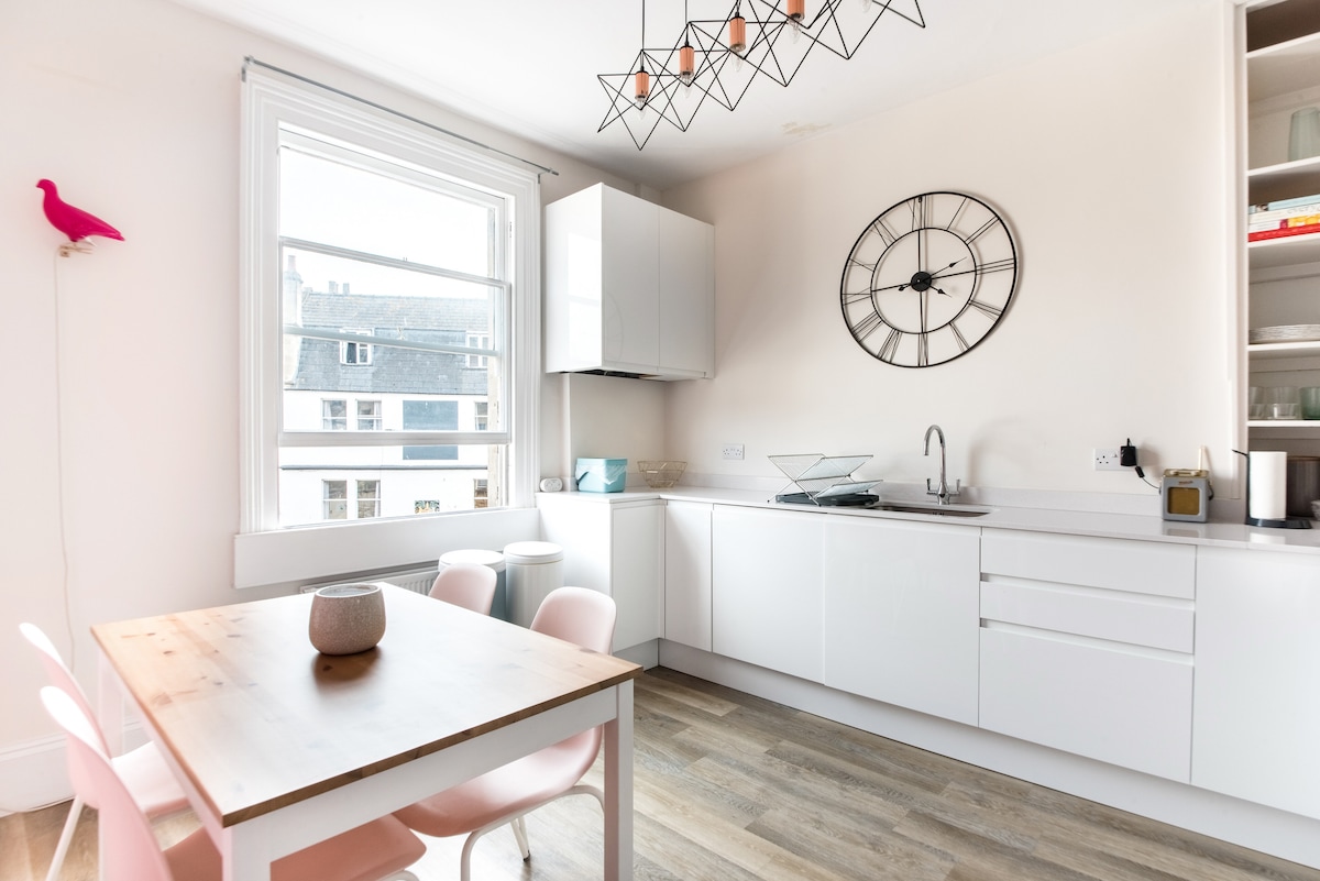 La propiedad es un gran apartamento en la planta baja que consta de dos hermosos dormitorios y dos impresionantes baños privados. Cuenta con una cálida y acogedora sala de estar de planta abierta y cocina. El dormitorio doble principal es muy grande y cuenta con una cómoda zona de estar, un televisor y un escritorio. Tiene un hermoso baño privado con bañera y ducha. La habitación también cuenta con un vestidor. El segundo dormitorio con baño es más pequeño, pero tiene una cama tamaño king que se puede convertir en 2 camas individuales a petición. La habitación cuenta con TV y almacenamiento incorporado. La cocina de planta abierta y la sala de estar son un lugar fantástico para comer y socializar. Contiene un televisor grande y muchos asientos cómodos. La cocina tiene nevera, lavavajillas y cocina integrados. Hay un lavadero independiente con lavadora, secadora, microondas y una nevera grande con congelador. El apartamento tiene 3 televisores inteligentes y un altavoz Sonos en la sala de estar. Esperamos que encuentres todo lo que necesitas para tener una estancia agradable, pero estamos cerca, así que no dudes en ponerte en contacto con nosotros si tienes algún problema. Ten en cuenta que se trata de una zona residencial tranquila. El apartamento está situado en un antiguo edificio victoriano y somos muy considerados y respetuosos con nuestros vecinos. El apartamento se encuentra en la bulliciosa zona de Seven Dials, con parques para familias, cafeterías, tiendas boutique y pubs con encanto cerca. El animado paseo marítimo de Brighton, la playa, el paseo marítimo y una gran variedad de restaurantes y tiendas están a solo unos pasos. La mayoría de las partes de la ciudad son fácilmente accesibles a pie desde el apartamento. Si conduces, hay aparcamiento de pago en la calle cerca. Alternativamente, hay un montón de excelentes opciones de transporte cerca para desplazarse y ver la ciudad, incluidas bicicletas de ciudad y autobuses. Estamos disponibles por teléfono o mensaje de texto durante tu estancia para ayudarte con cualquier problema o consulta.