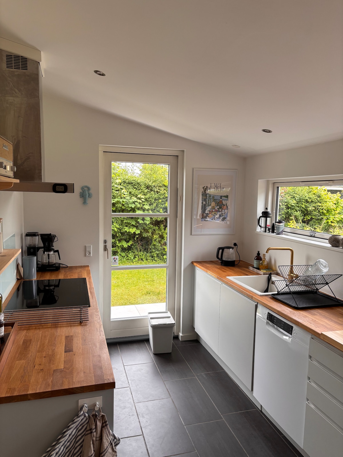 Nuestra acogedora casa de verano está a solo 150 metros de la playa de Enø y es el lugar perfecto para una escapada tranquila. Hay dos dormitorios, una cocina-sala de estar con comedor y sala de estar en uno, así como una estufa de leña para las noches frescas. Hay dos encantadoras terrazas cerradas: con sol todo el día, comedores, tumbonas y sombrillas, perfectas para un café tranquilo por la mañana, un libro a la sombra o una copa de vino al sol de la tarde. La zona es tranquila y pintoresca: aquí solo hay ruido en forma de canto de pájaros y aire marino.
