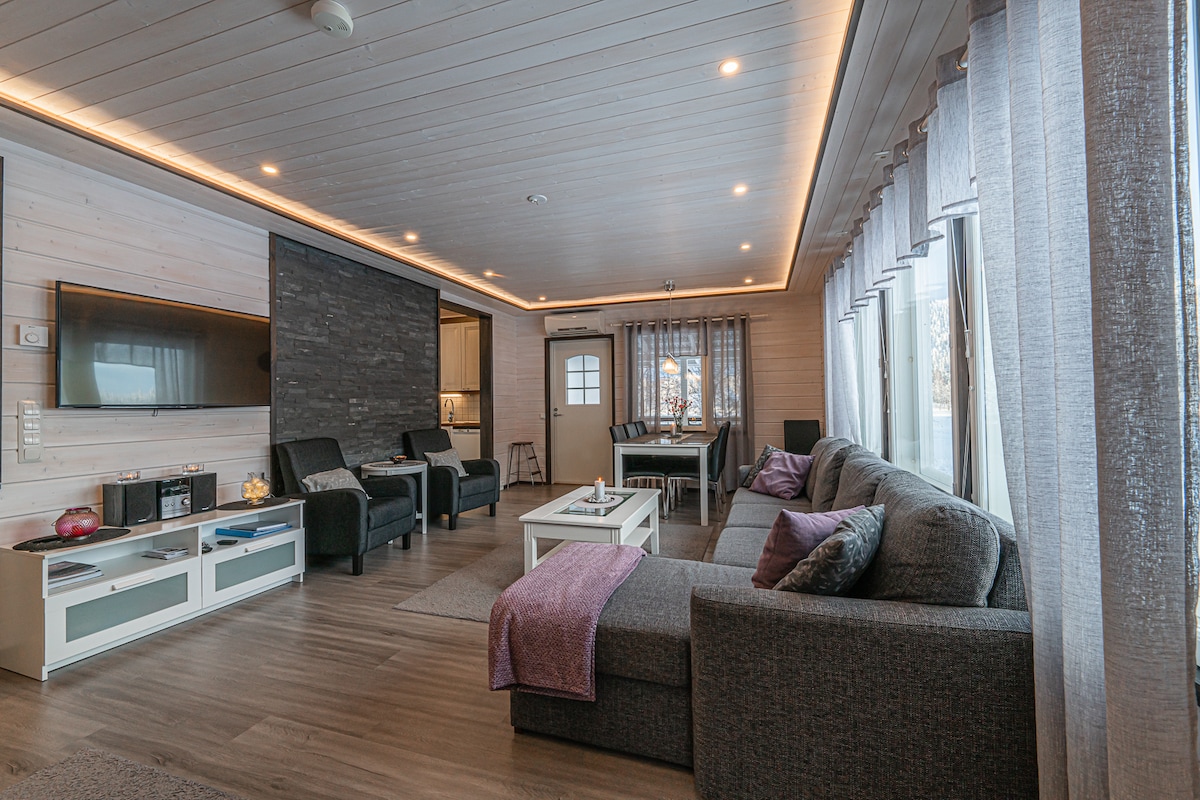 Enjoy easy living in the heart of Kilpisjärvi wilderness area. Perfect basecamp for nature lovers with all the modern comforts after a long day outdoors. From our two sunny terraces you can admire the mighty Saana, Malla and Barras around the glimmering lake Kilpisjärvi. Shopping center with bottleshop, petrol station and the restaurants are within a nice walking distance 1,5 km. Also ski-, bicycle- and snowmobil rentals you can find nearby.