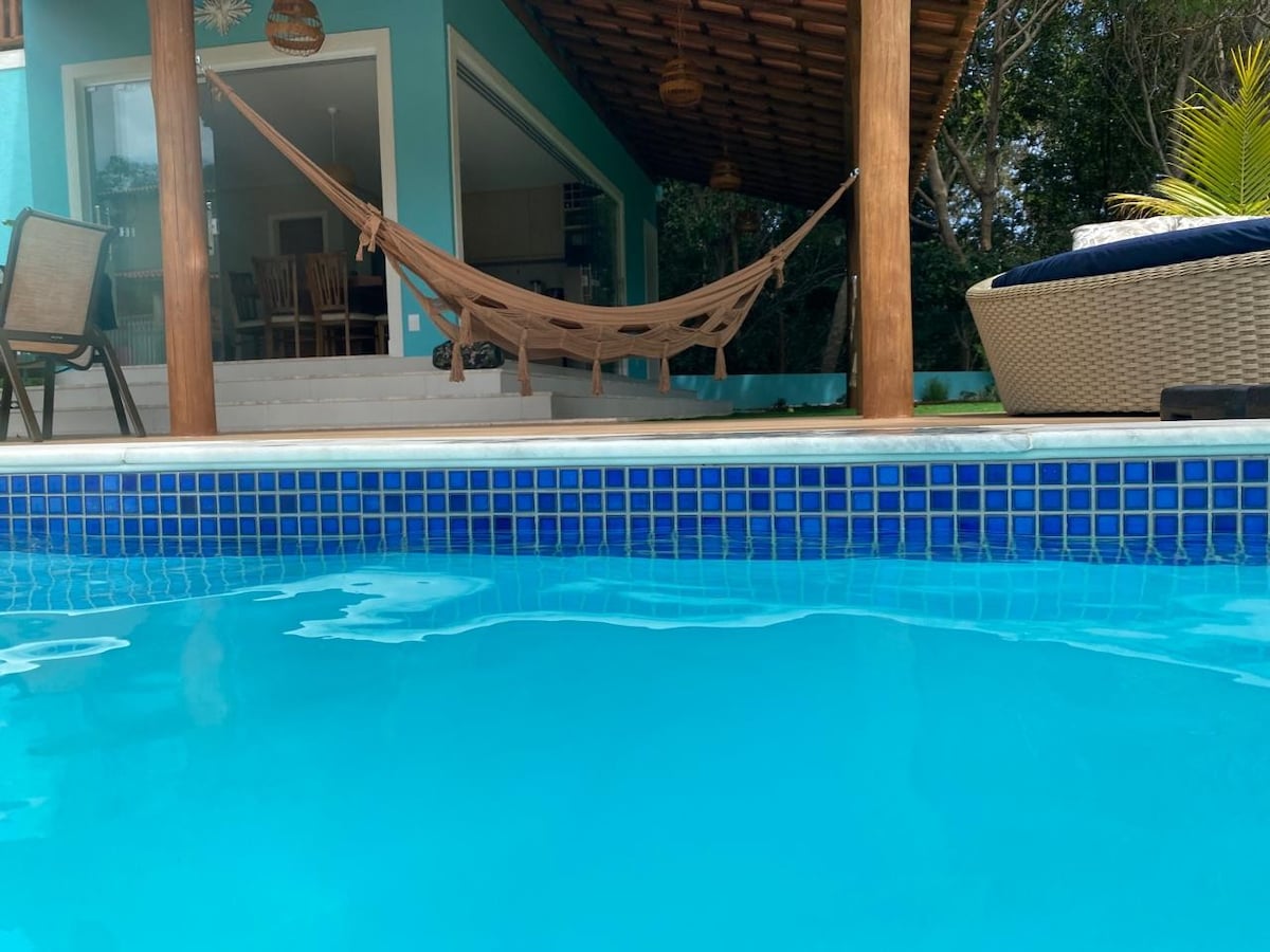 Lugar tranquilo, excelente para escapar de la ciudad y escuchar el ruido del mar. Con su brisa, es posible acostarse en la hamaca y disfrutar del tranquilo paisaje. Es una casa nueva, limpia, rústica, espaciosa y bien dividida. Pensando en la comodidad y practicidad para reunir a amigos y familiares, cuenta con toda la infraestructura, además de estar muy cerca de la playa y también con acceso al lago del condominio.