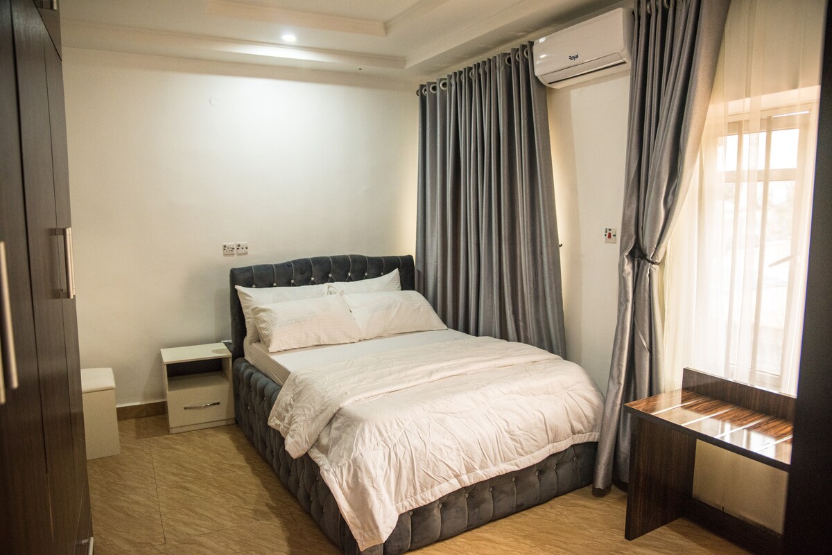 Home You'll Love: 3 ensuite bedrooms, fully furnished, airconditioned, secured apartment with kitchen to prepare and preserve your favorite meals. VERY STRICT RULE: PLEASE BOOK YOUR RESERVATIONS 48 HOURS EARLIER. Relax in this peaceful brand new building. Facilities: WIFI, DSTV, WATER HEATER, STANDBY GENERTOR FOR 24/7/360 POWER, PARKING, GATED BUILDING WITH SECURITY GUARD.