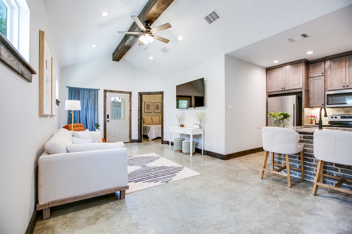 Nueva construcción de un escondite privado a dos manzanas del Riverwalk y del centro histórico. Este BNB tiene el aspecto y la sensación de una villa privada en un centro vacacional de alta gama y la ubicación no se puede superar. Esta elegante casa de 450 pies cuadrados no tan pequeña cuenta con una gran sala de estar con cocina pequeña, baño tipo spa y un dormitorio grande con cama tamaño king. Además de una pintoresca zona de patio al aire libre. A pie del paseo del río, tiendas, restaurantes, bares y mucho más. ¡Sabemos que te encantará aquí y que volverás para otra estancia de 5 estrellas!