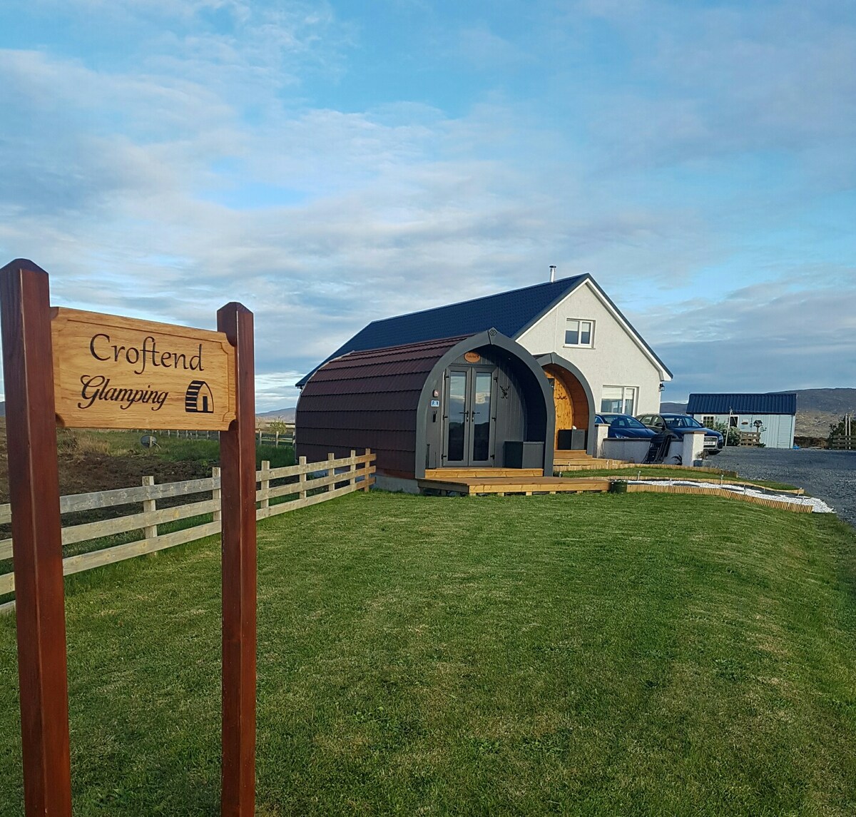 Otternish Pods on North Uist are situated on a working croft and are ideally located for exploring the islands. 1 mile from Berneray ferry terminal and 10 miles from Lochmaddy. Each pod is open plan with a kitchenette, seating dining, sleeping area and shower room. 3/4 bed and sofa-bed provides accommodation for up to 4. It is ideal for 2,If there are 4 adults you may feel it rather small. Bedding and towels are provided. Heating, TV and WiFi all add to a warm comfortable stay.