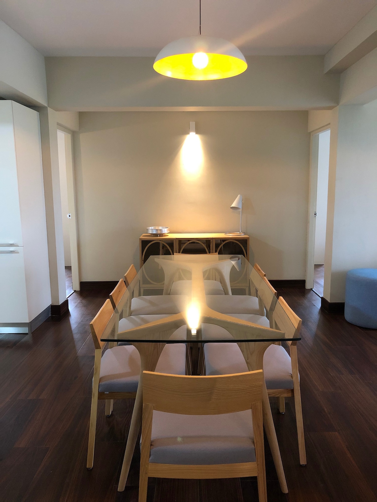Un apartamento para el viajero exigente, lujo en el corazón de un pueblo local. Pisos de madera, muebles e iluminación escandinavos, aire acondicionado y ventiladores. 2 espacios habitables, 2 dormitorios y 3 baños. Complementado con una cocina italiana de planta abierta totalmente equipada con electrodomésticos Siemens que incluyen lavavajillas, lavadora, horno, microondas y vitrocerámica. Todas las habitaciones tienen impresionantes vistas y 2 balcones. El edificio tiene una piscina, gimnasio. A 5 km del ferry rápido a Fort Kochi o Marine Drive.
