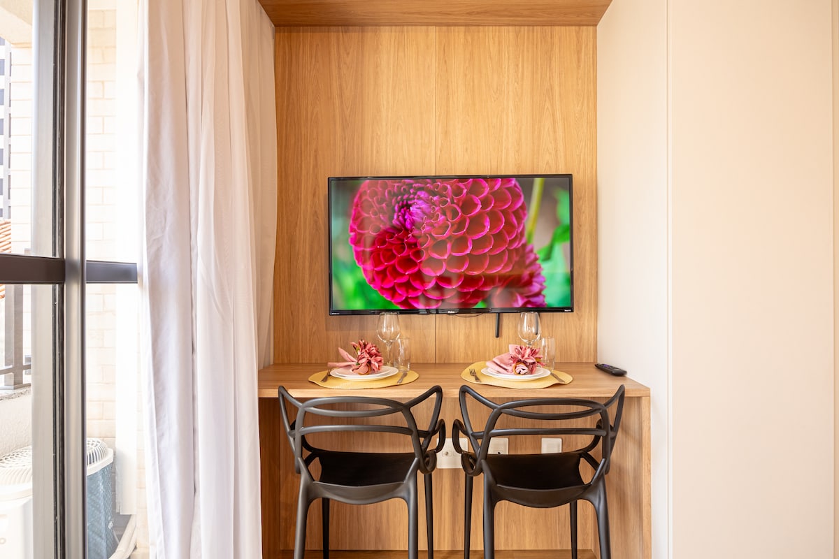Estudio moderno y acogedor, ubicado en el corazón de Vila Mariana. - Cama doble con ropa de cama completa. - Perrera totalmente equipada. - TV inteligente y wifi; - Gimnasio, piscina y lavandería. - Mesa de billar, sala de juegos y ping pong. - Seguridad y portería las 24 horas; - Junto a la estación de metro Vila Mariana. - Junto al hospital EINSTEIN Vila Mariana y ESPM, Belas Artes y UNIP. - Cerca de la calle Joaquim Távora, famosa por su gastronomía y vida nocturna. - A 3 km del parque Ibirapuera.