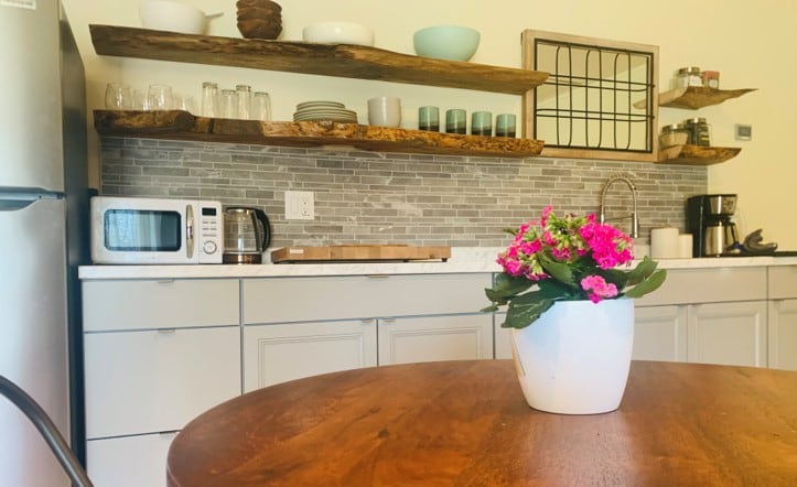 A 620 sq ft. fully private suite with your own entrance. The early American farmhouse is highlighted by a darling kitchenette, hot steam shower and original MCM furniture. We live on the other side in this year 1800 eyebrow colonial. Please note the kitchenette has an induction stove top and convection air fryer toaster oven. It's a great for light cooking. Please ask for a grill for cooking meat and greasy food. We are a zoned a b&b with bike rentals. See barn & bike, llc for more info.