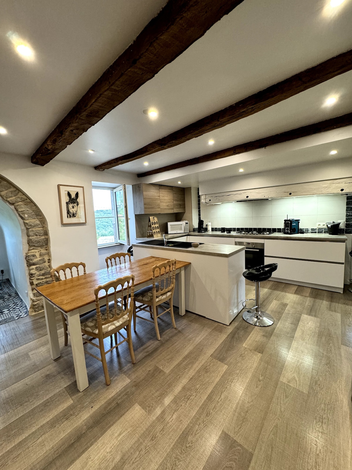 Nido con vistas a un mar de árboles. Antiguo horno de pan convertido en una casa luminosa al abrigo de las miradas, con un pequeño patio japonés en la entrada, un jardín en la parte trasera con vistas a un bosque, en el corazón de Quercy. Planta baja de piedra, piso de madera, estufa de leña (¡imprescindible en invierno!), rutas de senderismo de fácil acceso, numerosas actividades culturales y deportivas en la región. Ideal para los amantes de la naturaleza, los paseos y la tranquilidad.