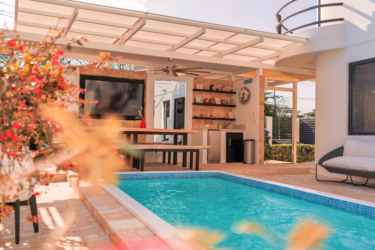 Nuestra casa frente al mar cuenta con una cocina moderna con sobre de cuarzo, pisos de cerámica, muebles modernos y electrodomésticos modernos. Esta casa cuenta con una amplia y moderna área de entretenimiento y piscina con vista al océano. Es limpia, segura y silenciosa, ubicada dentro de la "Zona Protectora de Tivives", el último reducto del bosque tropical seco existente en la Región del Pacífico Central de Costa Rica. ¡Adoramos este lugar y lo adorarás también!