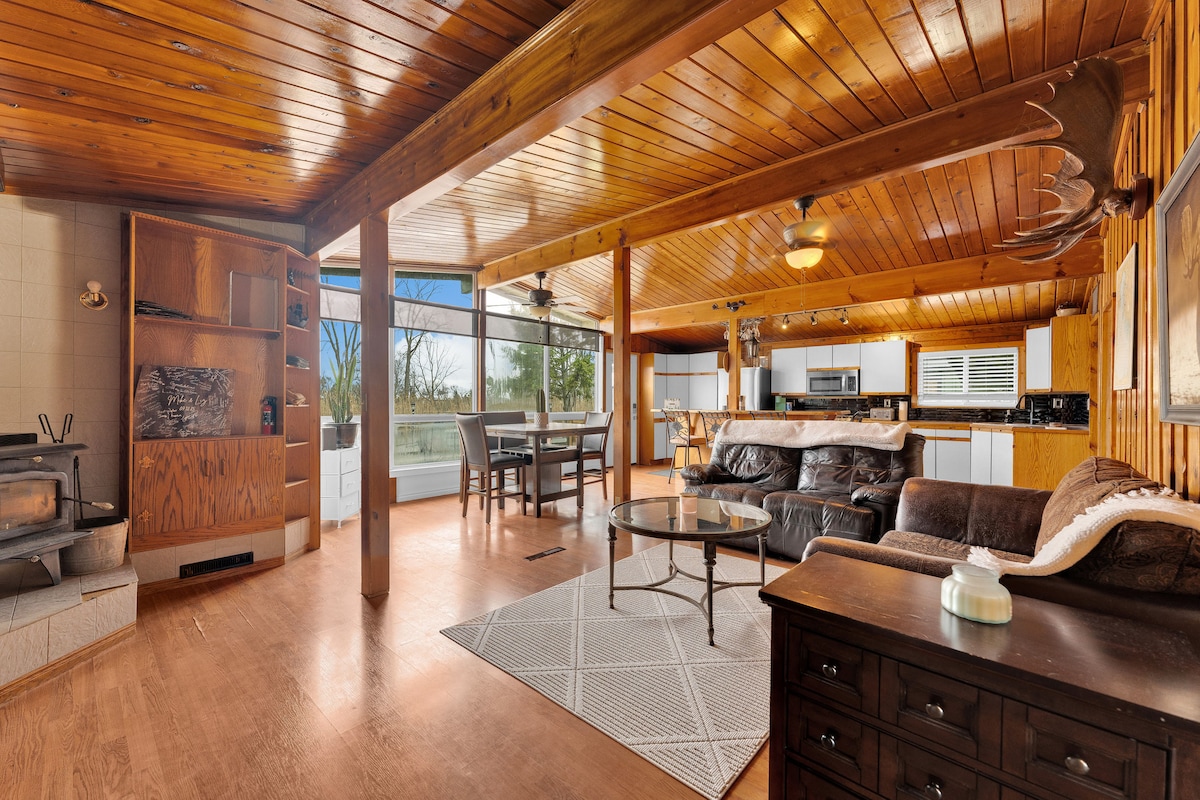 Escápate a la tranquilidad en nuestro alojamiento totalmente equipado y acogedor, ubicado en una ubicación pintoresca. Sumérgete en la aventura con kayaks y tablas de paddle de cortesía, lo que te permite explorar el impresionante paisaje natural e incluso llegar al lago St. Claire en kayak. Nuestra cocina está equipada con todos los elementos básicos para las delicias culinarias. El puerto deportivo y la playa se encuentran a solo 5 minutos en coche, mientras que el estadio de hockey está a solo 6 minutos. Perfecto para los amantes de la pesca, incluso ofrecemos alquileres diarios de embarcaciones.