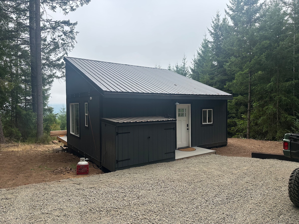 Sandy's first and only Tiny House! Although this home is located just a mile from Hwy 26 within Sandy's city limits, it's located on a private 23 acres, so you'll feel completely secluded. This makes it the perfect place to stay while visiting the Mt. Hood area. The tiny house was built to capture the amazing view of Mt. Hood. The home was designed around a moving window wall system that completely opens to the outdoors allowing for one of the best views of Mt. Hood. We hope you enjoy!!!