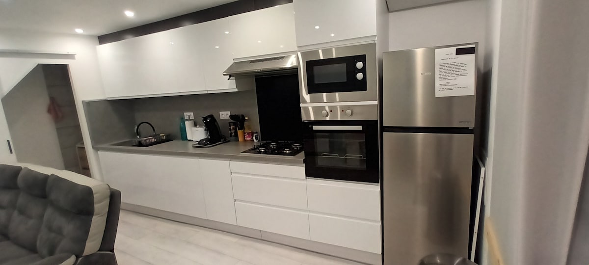 Luminoso y espacioso apartamento de 110 m2, situado en el 1er y único piso, impresionantes vistas a la maleza. Situado en pleno centro del pueblo, le ofrecerá paz y tranquilidad. Consta de una amplia sala de estar, una cocina/ comedor espaciosa y totalmente equipada, 2 dormitorios, cuarto de baño con ducha italiana e inodoro separado. -1 habitación climatizada - sala de estar con aire acondicionado -Apartamento totalmente equipado,para pasar una gran estadía. - Acceso Wi-Fi de alta velocidad - Estacionamiento privado gratuito cerrado.