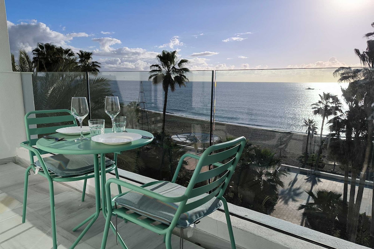 1ª LINEA DE PLAYA, ubicación perfecta en el mismo centro histórico de Estepona, donde encontrar la zona de restaurantes, tiendas y ocio. Aún así este apartamento/estudio es especial por sus impresionantes vistas al mar, disfrutará de increíbles amaneceres y atardeceres de postal pudiendo ver África y Gibraltar desde la cama o el sofá. Recién reformado y decorado. Accesible para silla de ruedas. Totalmente equipado, A/C. **Ideal para parejas + 1 niño**