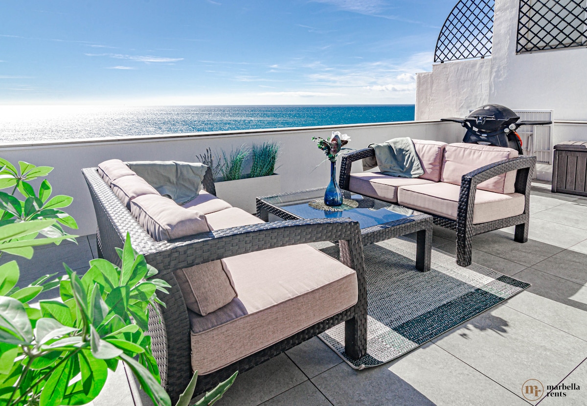 Apartamento completamente renovado a pie de playa en el casco antiguo de Estepona. Balcón a lo ancho del apartamento con hermosas vistas a la playa y al mar. Equipado con 2 ascensores. La casa tiene aire acondicionado (frío y calor), wifi y TV con todos los canales holandeses, belgas, alemanes, ingleses, portugueses y franceses. El wifi es rápido, con una conexión de fibra de 300 Mb. Debido a su ubicación y comodidad, el apartamento es muy popular en el alquiler durante todo el año.