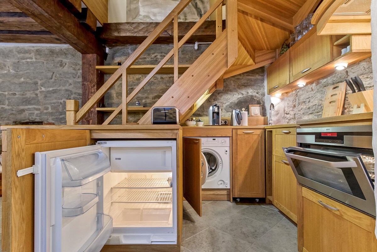 Disfruta de un tranquilo refugio en el casco antiguo donde el carácter medieval se encuentra con el confort moderno. Este espacioso apartamento de dos habitaciones cuenta con elegantes antigüedades, una cama tamaño king excepcionalmente cómoda y una bañera de hidromasaje de lujo. En verano, los gruesos muros históricos mantienen el apartamento agradablemente fresco, lo que contribuye a su ambiente tranquilo y relajante. Se encuentra en una de las calles más pintorescas de Tallin, a solo unos pasos del Teatro Municipal de Tallin y a poca distancia a pie de los principales lugares de interés del casco antiguo.