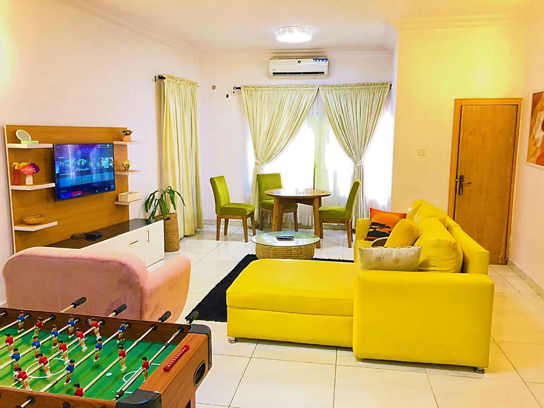 Nestled in a prime location, CasaGialo is a private 2bedroom duplex house , in self compound Gated with own clean water supply,mosquito nets, fully air conditioned , a Garden , balcony and patio . You will have access to all utilities in the house including 2 bedrooms with each ensuite , 2 livingrooms /game room , fully fitted kitchen, laundry area, 3 toilets and 2 baths . 💯 privacy is guaranteed. You will have 24 hrs electricity,air-conditioning CCTV, and has been seasonally fumigated .