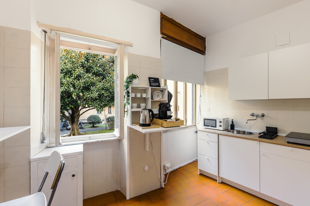 El departamento está en el distrito EUR, en el segundo piso de un elegante edificio señorial. Es un apartamento estudio cómodo, tranquilo y cómodo, ideal tanto para estadías cortas como largas. El centro histórico es fácilmente accesible gracias a la línea B del metro, parada EUR Palasport, situada a unos 15 minutos a pie. También se puede llegar rápidamente a los principales aeropuertos de Roma, Fiumicino y Ciampino, así como al mar de Ostia, perfecto para un viaje fuera de la ciudad.