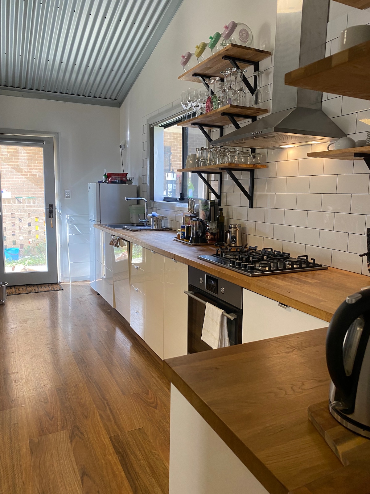 El cobertizo es un garaje reconvertido. Está al lado de nuestra casa. Estamos a 6 km de los límites de la ciudad de Mudgee. Cosas importantes a tener en cuenta: el cobertizo comparte un patio de la casa con nosotros y nuestros 3 perros están en el patio. Son muy amables, pero ladran. El cobertizo tiene 2 dormitorios pequeños: 1 con una cama tamaño queen y el otro con una cama doble. Hay una ducha a la que se accede entrando en la bañera. No apto para personas con movilidad reducida. TEN EN CUENTA QUE TIENES QUE ENTRAR EN LA BAÑERA PARA DUCHARTE, COMO SE MUESTRA EN LA FOTO.