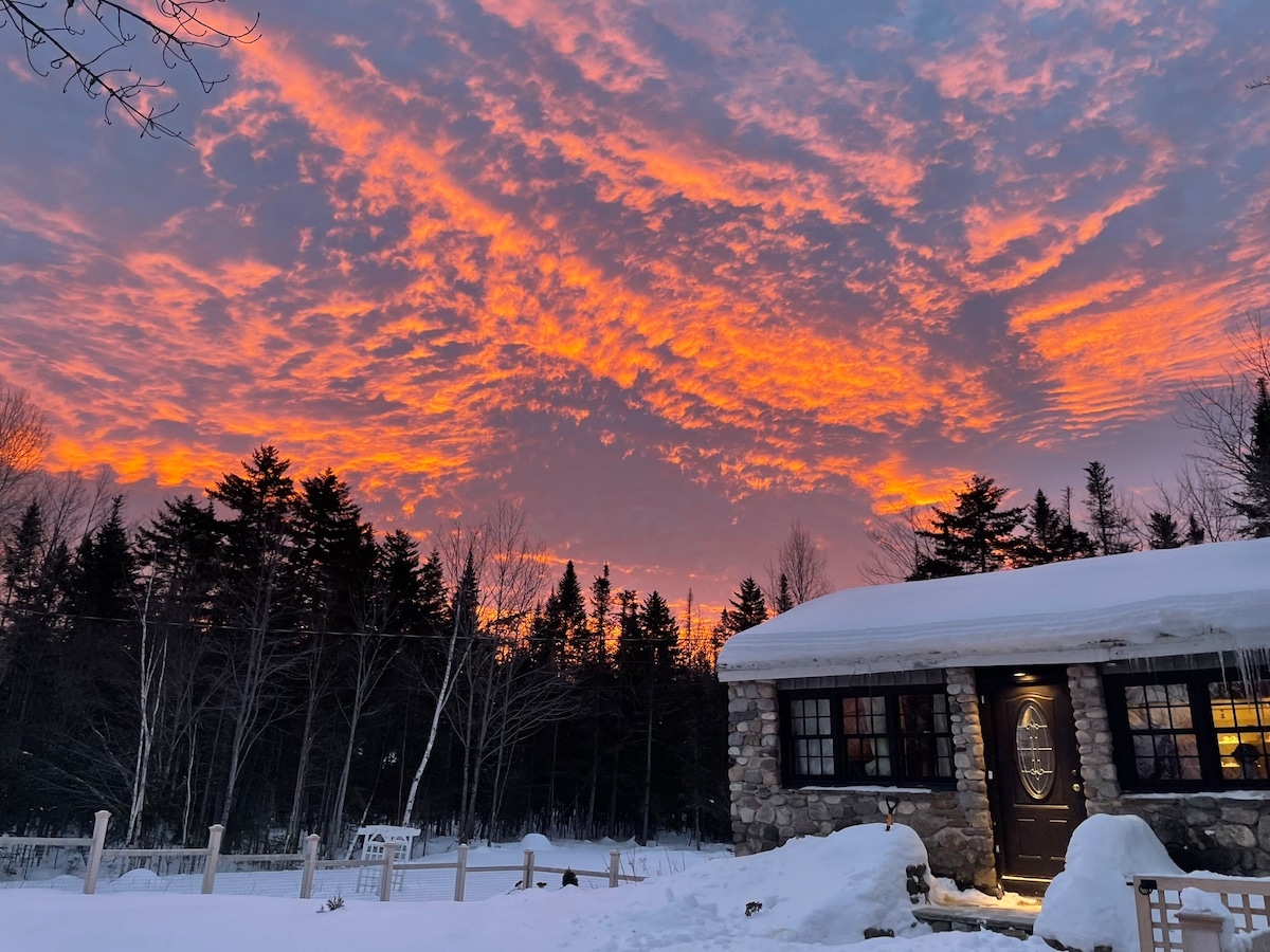 Chalet totalmente equipado que incluye un terminal eléctrico VE, internet de alta velocidad en una zona privada, pura relajación contemplando las estrellas y disfrutando de la naturaleza en su máximo esplendor. Tamaño = 24' x 24' (816 p cuadrado) ¡Bienvenidos, amigos de 4 patas! Refugio de paz en el bosque para practicar senderismo, raquetas de nieve, ciclismo de montaña, caza, lagos para pescar, nadar (a 15 minutos de la cabaña), etc. Senderos federales y pistas de motos de nieve. A 15 minutos del Parque Nacional del Monte Mégantic y del Monte Gosford