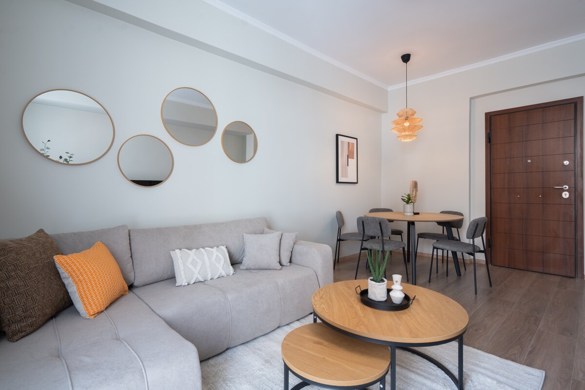 Lujoso apartamento de dos dormitorios en la zona de Kastella/Pireo. Situado en un barrio tranquilo y seguro en la colina de Profitis Hlias. El apartamento ha sido completamente renovado en 2021 cumpliendo con todos los requisitos de un apartamento moderno con un gran gusto estético en el diseño interior. Cerca puedes encontrar «Mikrolimano», donde puedes caminar junto al mar y visitar algunos bares y restaurantes.