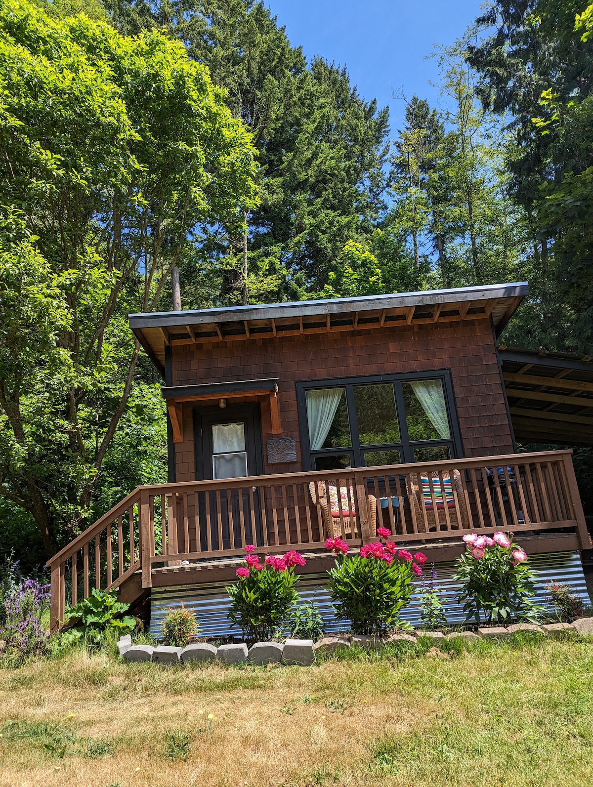 Esta acogedora casa de campo de 650 pies cuadrados del noroeste del Pacífico se encuentra en el jardín lejos de la calle. Sombra y sol. Es un hogar completo. La decoración ecléctica incluye baño antiguo, bañera con patas y ducha opcional, una cocina abierta en la que realmente se puede cocinar, rincón de café y un comedor, sala de estar completa, dormitorio, armarios, etc. Entrada y aparcamiento privados. El autobús para enfrente. El barrio tiene muchos árboles, vistas a montañas nevadas, a poca distancia en coche de playas y restaurantes internacionales. A 12 millas de Seattle.