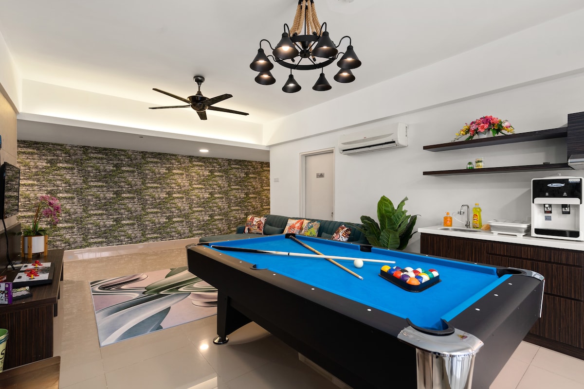StarSuiteAC: ¡Alojamiento de lujo sobre las nubes! Un dúplex lujosamente diseñado en el piso alto, que ofrece una impresionante vista en la alfombra de las nubes del horizonte de Kuala Lumpur. ¡Relájate bajo el techo estrellado parecido a una galaxia y experimenta una escapada como ninguna otra! Disfruta de una sala de karaoke insonorizada, billar y hockey de aire, y un cine en casa con sonido envolvente para una verdadera experiencia cinematográfica. Instalaciones: cocina, nevera, microondas, arrocera, freidora de aire, filtro de agua, lavadora (con secadora), silla de masaje, etc.