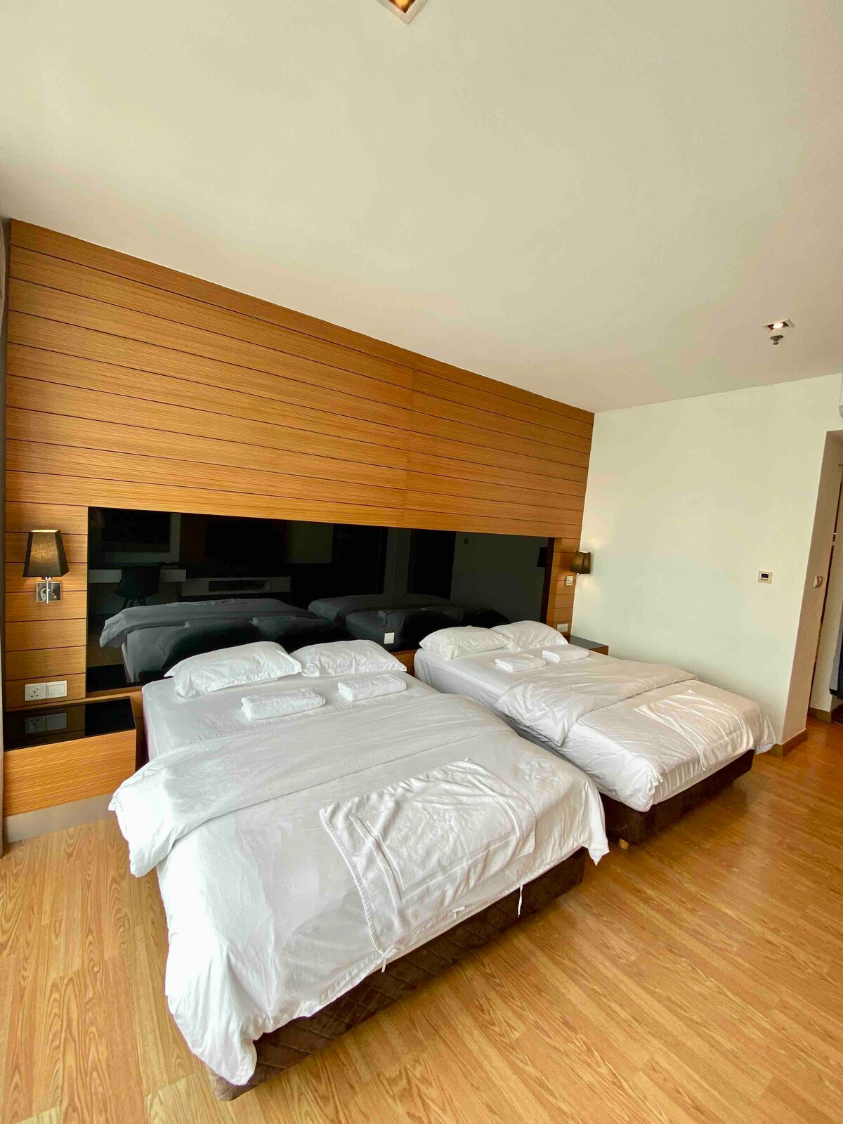 Eaton Residence by HM Costa Doro 2 🌟habitaciones 2 baños 108SM 2-8🌟 personas 1 habitación principal - Cama tamaño king(2 personas) 1 habitación central - Cama tamaño queen (2 personas) GRATIS ADICIONAL Colchón en el suelo de 4 camas individuales (4 personas) ~Instalaciones(abiertas de 7:00 a. m. a 10:00 p. m.) Piscina de entrenamiento en el borde infinito del🆓 nivel 51, piscina de inmersión,piscina infantil (vista KLCC) Gimnasio Sky de🆓 nivel 50, sala de yoga, sala de juegos 🆓Nivel 33A Sky Lounge 🕒Llegada AUTÓNOMA a las 3:00 p.m. en adelante Salida 🕚AUTÓNOMA: 11:00 h. Antes de las 3:00 p. m., espera en el área de espera de guardería, llama al servicio de atención al cliente para el almacenamiento gratuito de equipaje