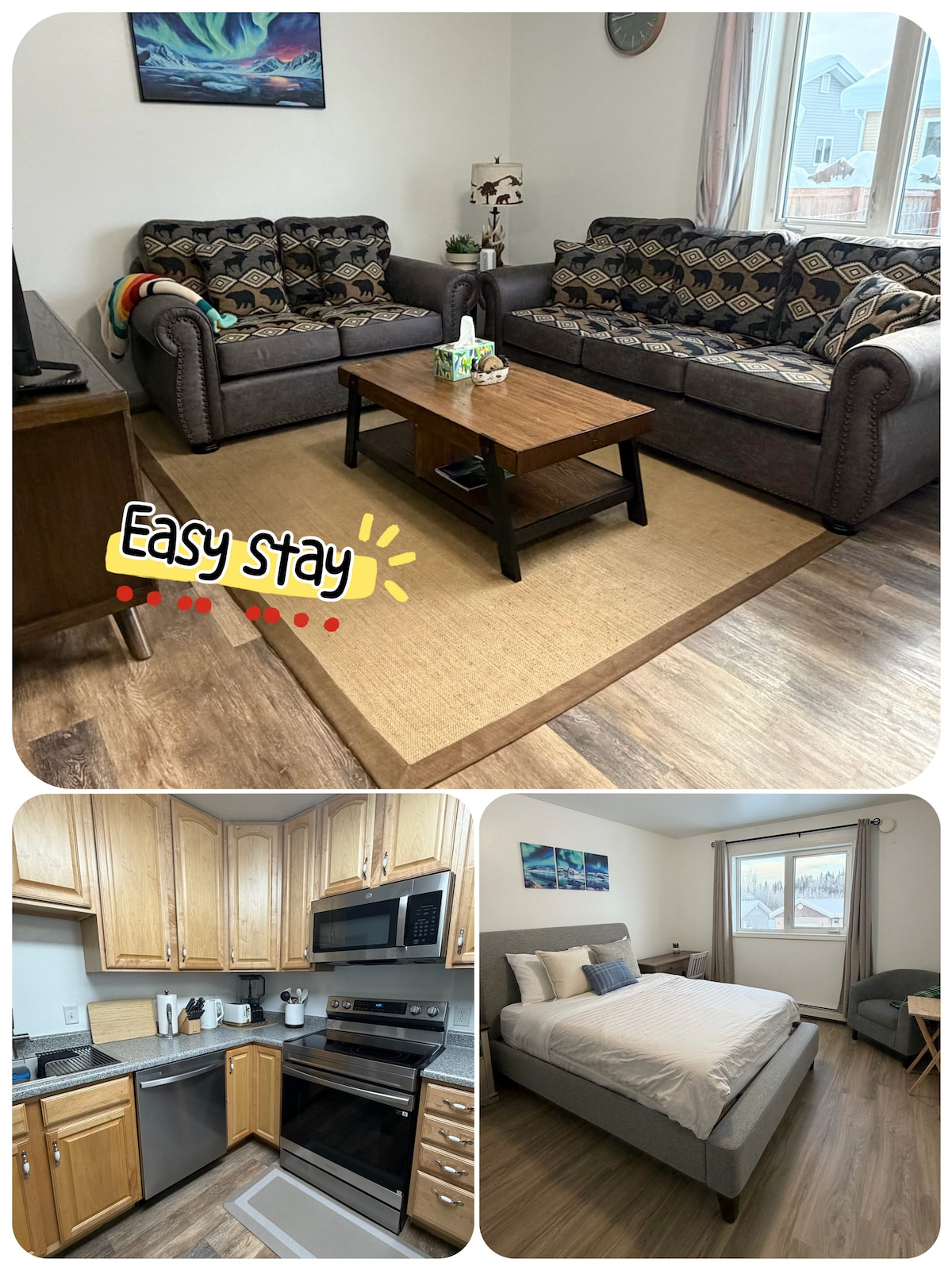 ¡Bienvenido a tu escapada de relajación! ¡Escápate de las luces de la ciudad para ver las auroras posibles directamente desde tu porche delantero! Se proporcionan abundantes comodidades en este apartamento privado convenientemente ubicado entre Fairbanks y North Pole. Esta unidad cuidadosamente pensada y acogedora seguramente será un espacio reconfortante para hacer como “base de operaciones” durante tu viaje. *No hay lista de tareas * ¡solo pedimos a nuestros huéspedes que respeten el espacio, ya que era su propia casa!