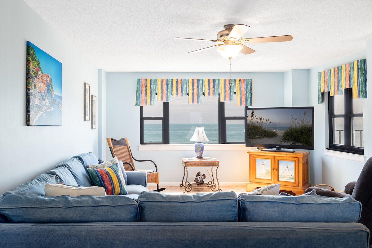 ¡Escapada familiar frente al mar con playa privada! Despierta con impresionantes vistas al mar en este refugio costero totalmente renovado en el cuarto piso. Este elegante alojamiento de 2 dormitorios, que forma parte de Vista Luxury Rentals, está a solo unos pasos del ascensor. Disfruta de una cocina gourmet, sábanas de lujo, toallas de playa y artículos de tocador básicos. Acceso a 4 piscinas (incluida una cubierta), sauna, gimnasio y playa privada. Desde el balcón privado hasta la habitación con la «megalitera», cada detalle está diseñado para crear recuerdos familiares de primer nivel. ¡Disfruta de la diferencia de Vista!