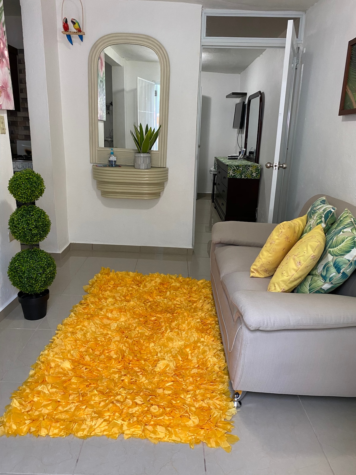 Precioso Apartamento para 2 personas totalmente independiente (son 5 en total) TENEMOS PANELES SOLARES, con entrada independiente, cada 1 con dormitorio, baño, cocina, estufa , microondas, lavadora, secadora, aire acondicionado en la habitación , wifi, parking privado decorado con murales, patio con proyector y Bbq, roku Tv y netflix. Cerca de todo¡ Supermercados ,Hospital , Farmacias, a minutos de la playa Seven Seas