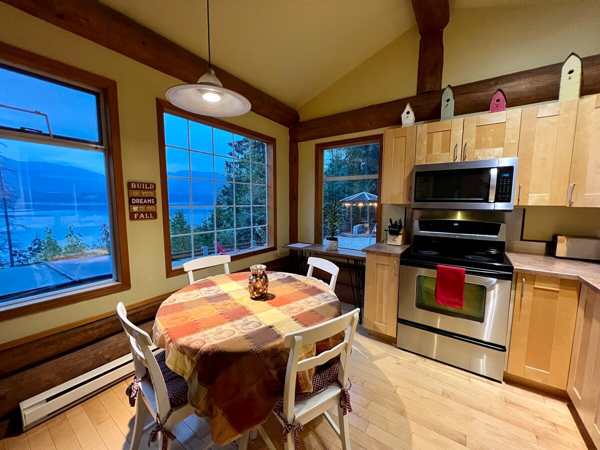 El Nido del Águila es la escapada perfecta y romántica. Ofrece lo último en relajación, mientras te sientas y disfrutas del crepitar de la chimenea de leña, o disfrutas de una copa de vino mientras te sumerges en tu jacuzzi privado con vistas al lago Shuswap. Un poco escondido en el bosque, escondido de la carretera, puedes sentarte y disfrutar de las impresionantes vistas desde todas las habitaciones de la cabaña. Ofrecemos todo lo que necesitas para una escapada relajante en el lago Shuswap, ¡y admitimos mascotas!