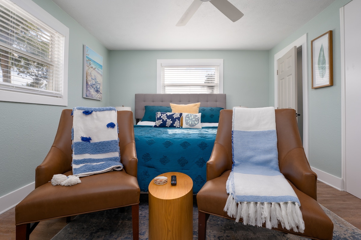 Alójate en Seven Palms Retreat en 2nd Avenue en Jacksonville Beach para una escapada tranquila. Esta casa de 2 dormitorios y 1 baño está a solo 7 manzanas de la playa, a 5 minutos en bicicleta de la arena. A poca distancia a pie de tiendas locales, parques, bolos y restaurantes. Capacidad para 6 personas con una cama tamaño queen, 2 camas individuales y un sofá cama extraíble de tamaño completo. Relájate junto a la hoguera en el patio trasero de adoquines y haz una barbacoa al aire libre. Nuestra casa completamente renovada garantiza un ambiente limpio y acogedor para tu viaje.