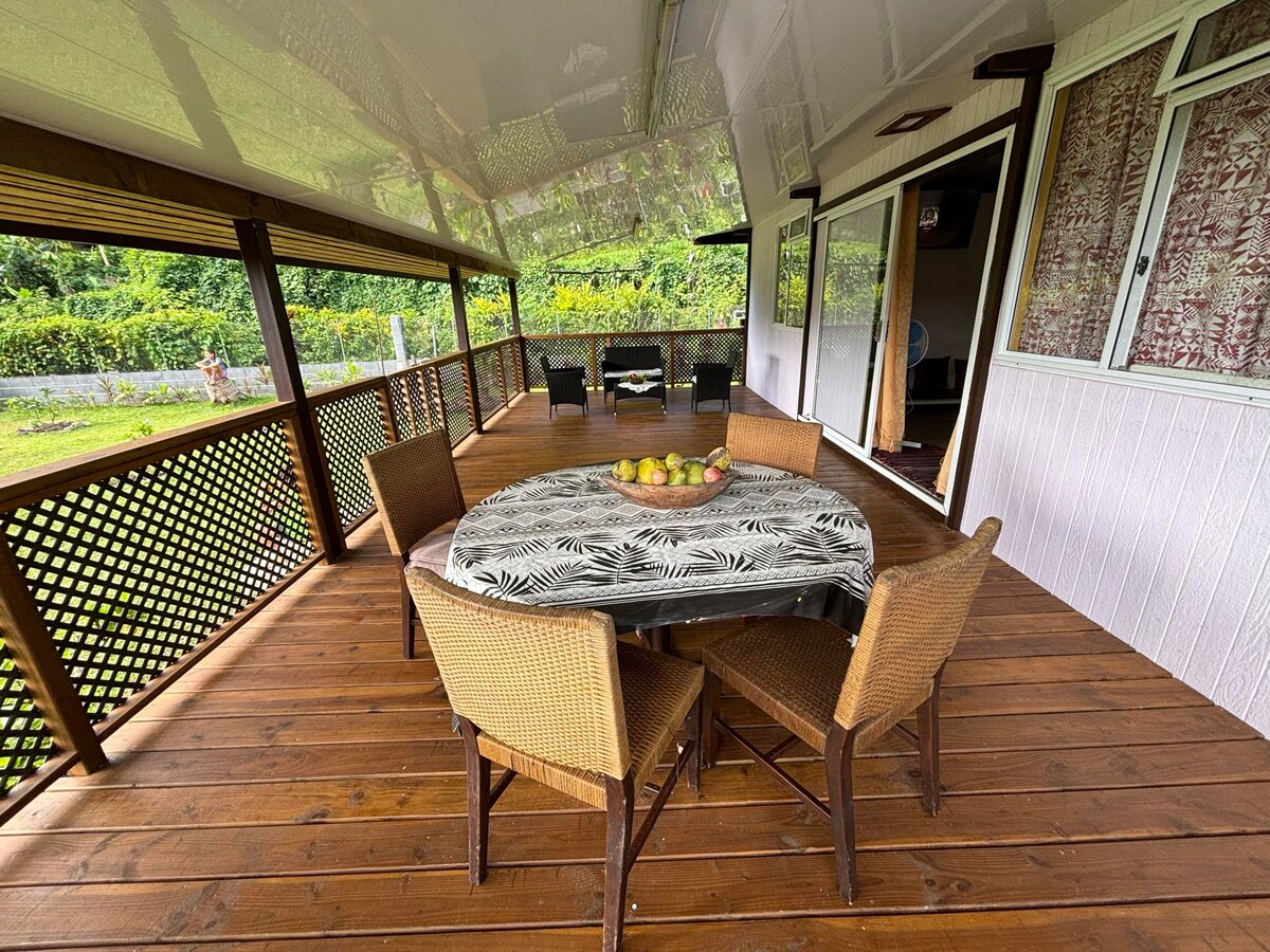 CASA TEVAIPUNA Casa sobre pilotes en un gran jardín vallado, garaje para un automóvil, terraza muy grande y espaciosa, dos habitaciones con aire acondicionado, cocina equipada, wifi, televisión conectada, cerca de todos los servicios, lavarropas disponible, 4 bicicletas de playa (en bastante buen estado). Situado en una zona tranquila, a 15 minutos a pie del muelle de Fare, a 2 km del aeropuerto. La pequeña playa está a 10 minutos y la destilería, a 5 minutos en bicicleta.