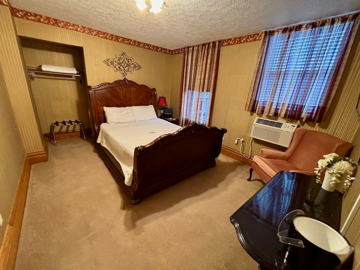You won’t want to leave this charming, one-of-a-kind place. Comfort at its best! Put your feet up and relax after your adventures! Privacy and wrap around porch to sit outside in this historic civil war themed hotel! Must be able to walk up steps to access guest room. There is a soup & sandwich shop and a donut shop in walking distance
