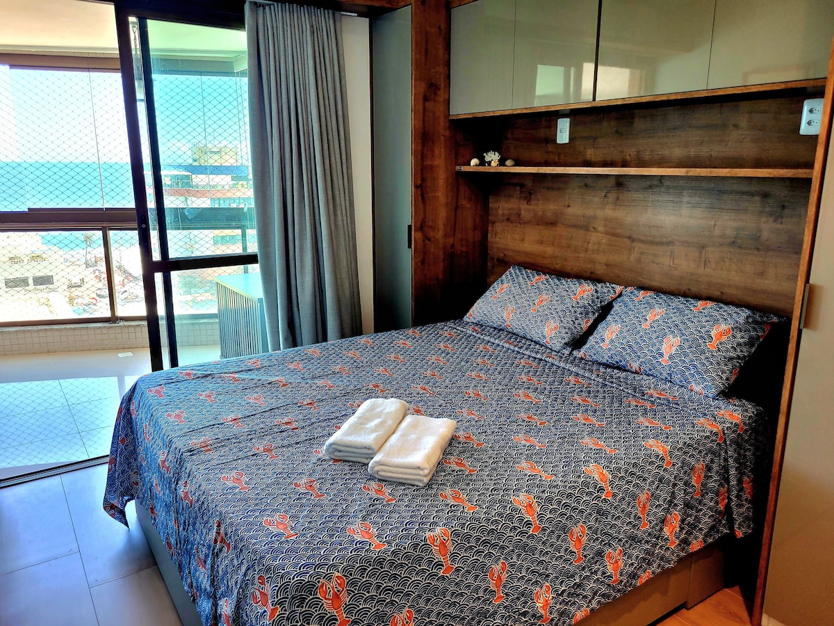 ¡Un apartamento con espectaculares vistas al mar e ideal para aquellos que buscan alojarse a solo 100 metros de Farol da Barra Beach con comodidad, seguridad y privacidad! El departamento de 1 dormitorio tiene aire acondicionado, cama doble, vista frontal al mar y armario, lujoso baño con ducha y agua caliente, cocina equipada con placa de cocina de gas, microondas, nevera con congelador y horno, sala de estar con sofá y televisión de 50pulgadas. El balcón es un lugar para relajarse gracias a la esquina del café y la silla con vistas al mar.