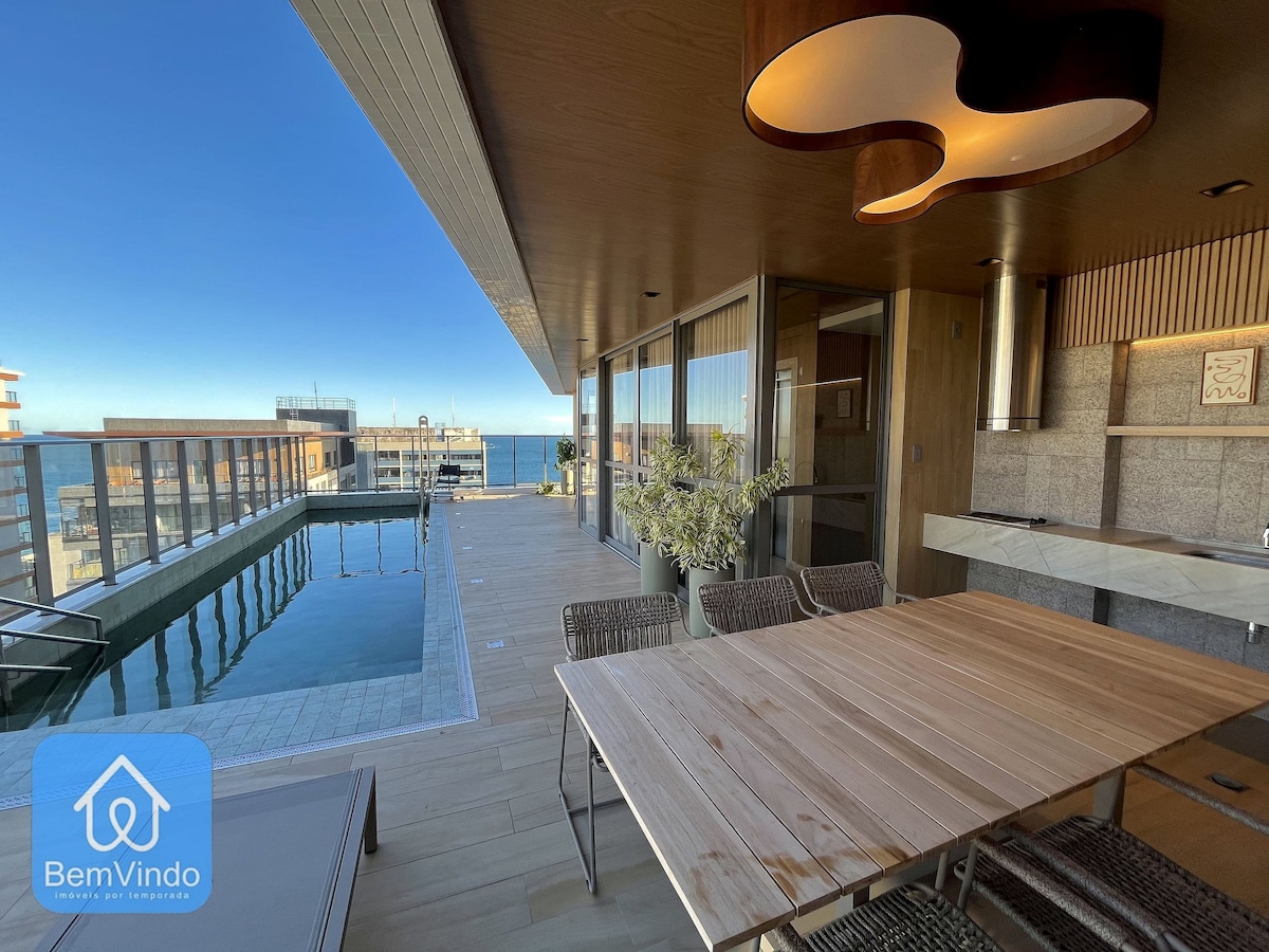 Cómodo Departamento, amplio ventanal frente al mar, totalmente remodelado y amoblado, ubicación privilegiada, cerca de bares, restaurantes y toda la animada vida nocturna de Barra. El Piso cuenta con servicio diario de limpieza y housekeeping, aire acondicionado split silencioso, Smart TV 55”, Wi-fi, lavadora y secadora, además de piscina y parking en el edificio. Situado frente a las encantadoras piscinas naturales de Praia da Barra (solo cruce la calle) y con una hermosa orilla para pasear.
